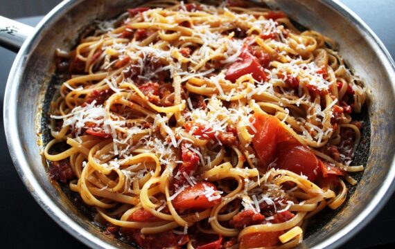 Pasta met chili, bacon en tomaat (Antonio Carluccio)