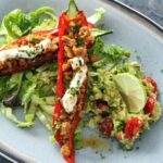 Geroosterde puntpaprika's met kippengehakt en guacamole