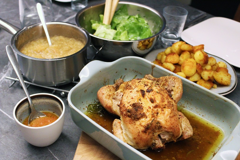 Hoevekip met appelmoes en gebakken aardappelen (Jeroen Meus)