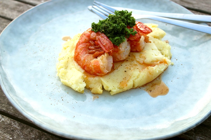 Aardappel-knoflookpuree met scampi (Piet Huysentruyt)