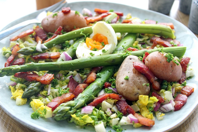 Lunchsalade met groene asperges en spek