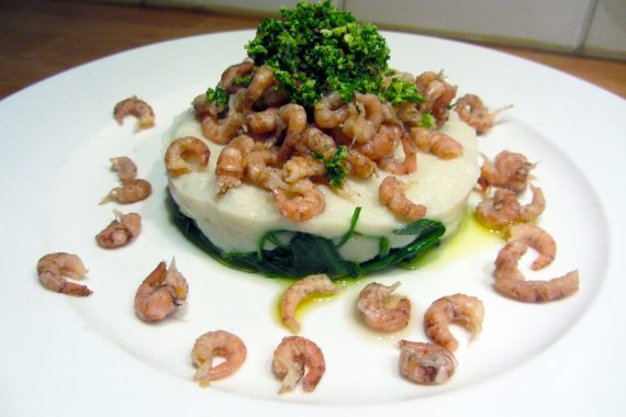 Pensen met pompoenpuree en savooikool (Jeroen Meus)