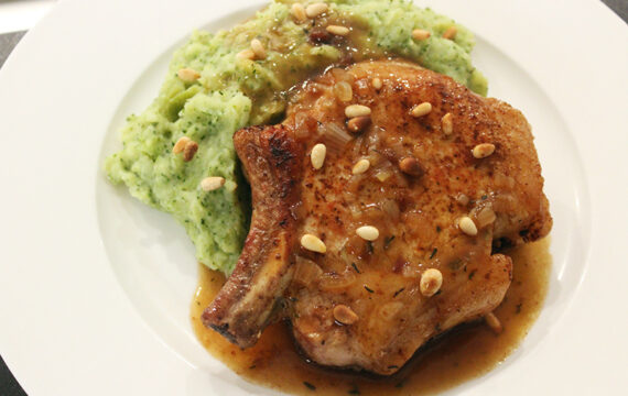 Hoevekip met appelmoes en gebakken aardappelen (Jeroen Meus)