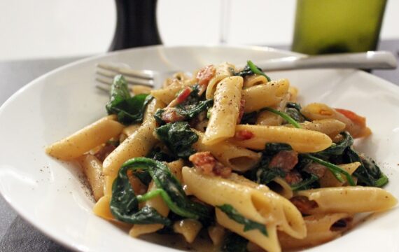 Macaroni met kip, spinazie en erwtjes (Jeroen Meus)