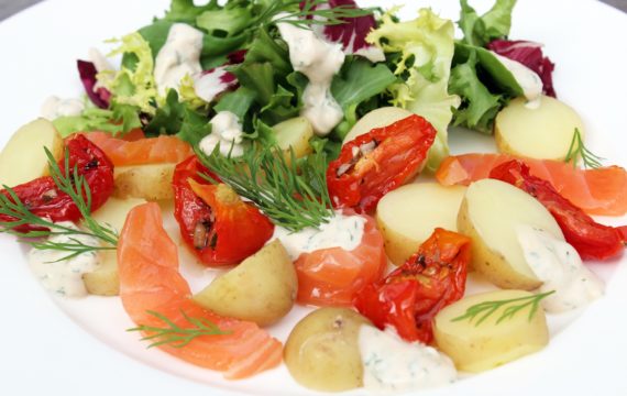 Ardeense forelfilet met salie en geroosterde groentjes