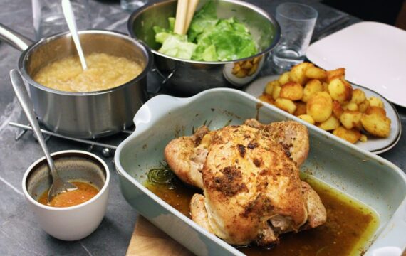 Hoevekip met appelmoes en gebakken aardappelen (Jeroen Meus)