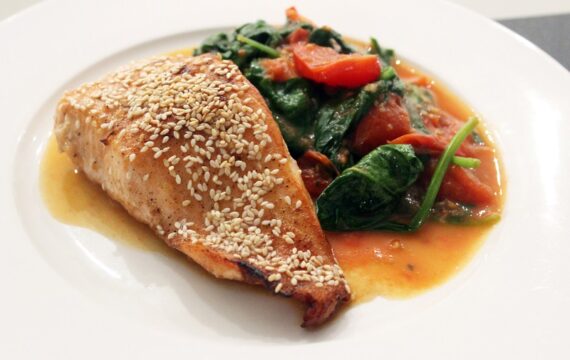 Gemarineerde zalm met sesamrijst en ananas (Colruyt)