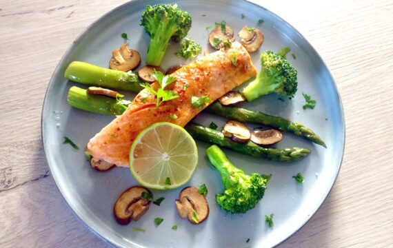 Hasselback-zalm met harissa-groentjes (Jamie Oliver)