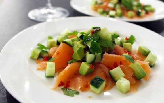 Gemarineerde zalm met sesamrijst en ananas (Colruyt)