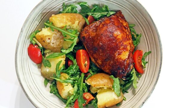 Hoevekip met appelmoes en gebakken aardappelen (Jeroen Meus)