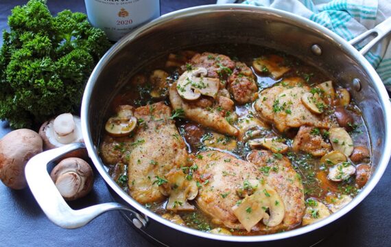 Hoevekip met appelmoes en gebakken aardappelen (Jeroen Meus)