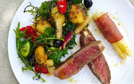 Hoevekip met appelmoes en gebakken aardappelen (Jeroen Meus)