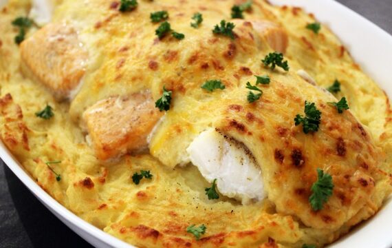 Schelvishaasje met mosterdsaus, boontjes en kroketten (Colruyt)