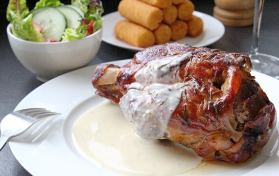 Hoevekip met appelmoes en gebakken aardappelen (Jeroen Meus)