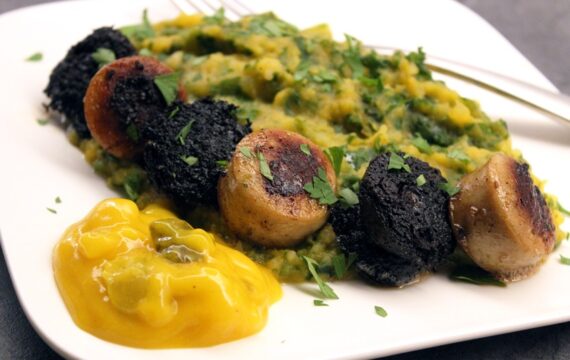 Pensen met pompoenpuree en savooikool (Jeroen Meus)