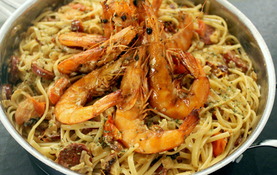 Scampi met curry en frisse guacamole (Sandra Bekkari)