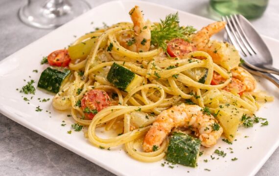 Linguine met scampi, courgette en venkel (Jeroen Meus)