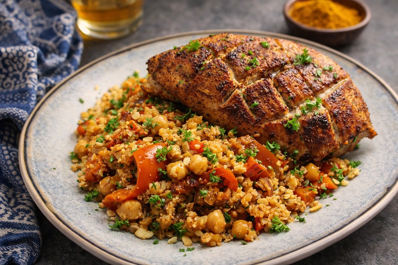 Een gezonde levensstijl begint bij gezonder eten. Dat hoeft echter niet te betekenen dat je enkel nog duffe salades op het menu mag zetten. In dit recept combineren we malse kipfilets met typische Marokkaanse kruiden en een bonte couscous van bloemkool met kikkererwten. Een minimum aan koolhydraten, een maximum aan smaken!