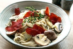 Speltspaghetti met witloofroom en parmaham (Sandra Bekkari) |