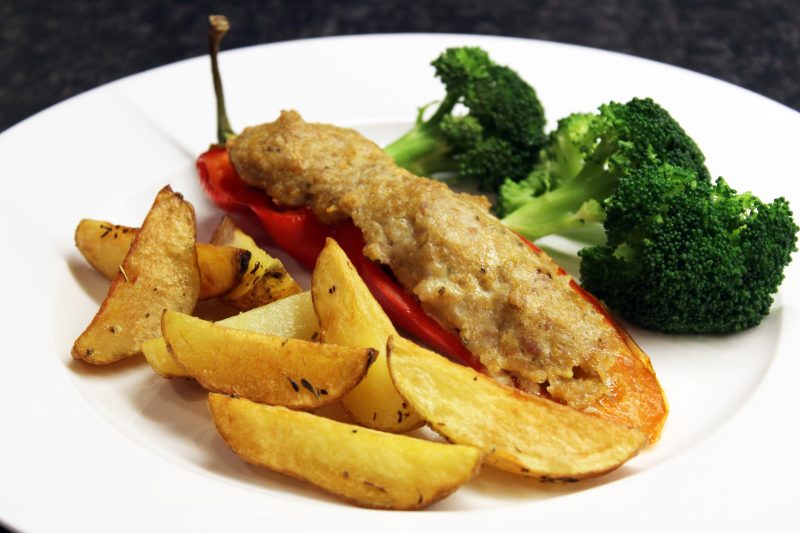 Gevulde paprika’s met aardappelwedges