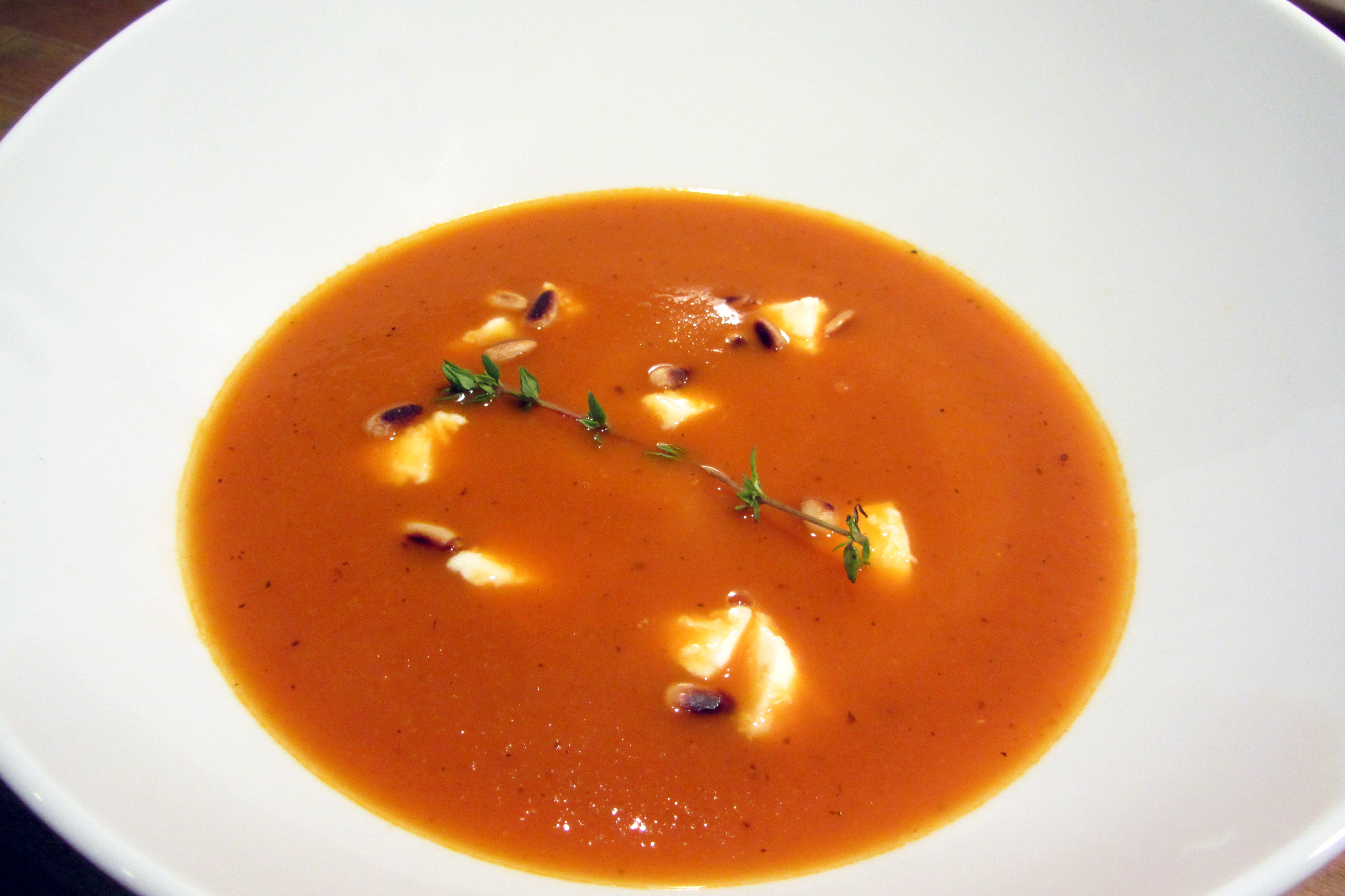 Soep is niet noodzakelijk een winters gerecht. Met een rijke selectie aan groentjes en een flinke schep zuiderse kruiden heb je een verrassend zonnig voorgerecht op tafel staan. De afwerking met mozzarella en pijnboompitjes maakt dit smakelijke soepje helemaal af!