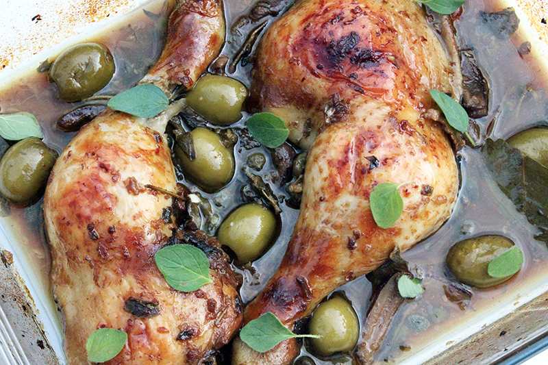 Gebraden kip met dadels, olijven en kappertjes (Ottolenghi)
